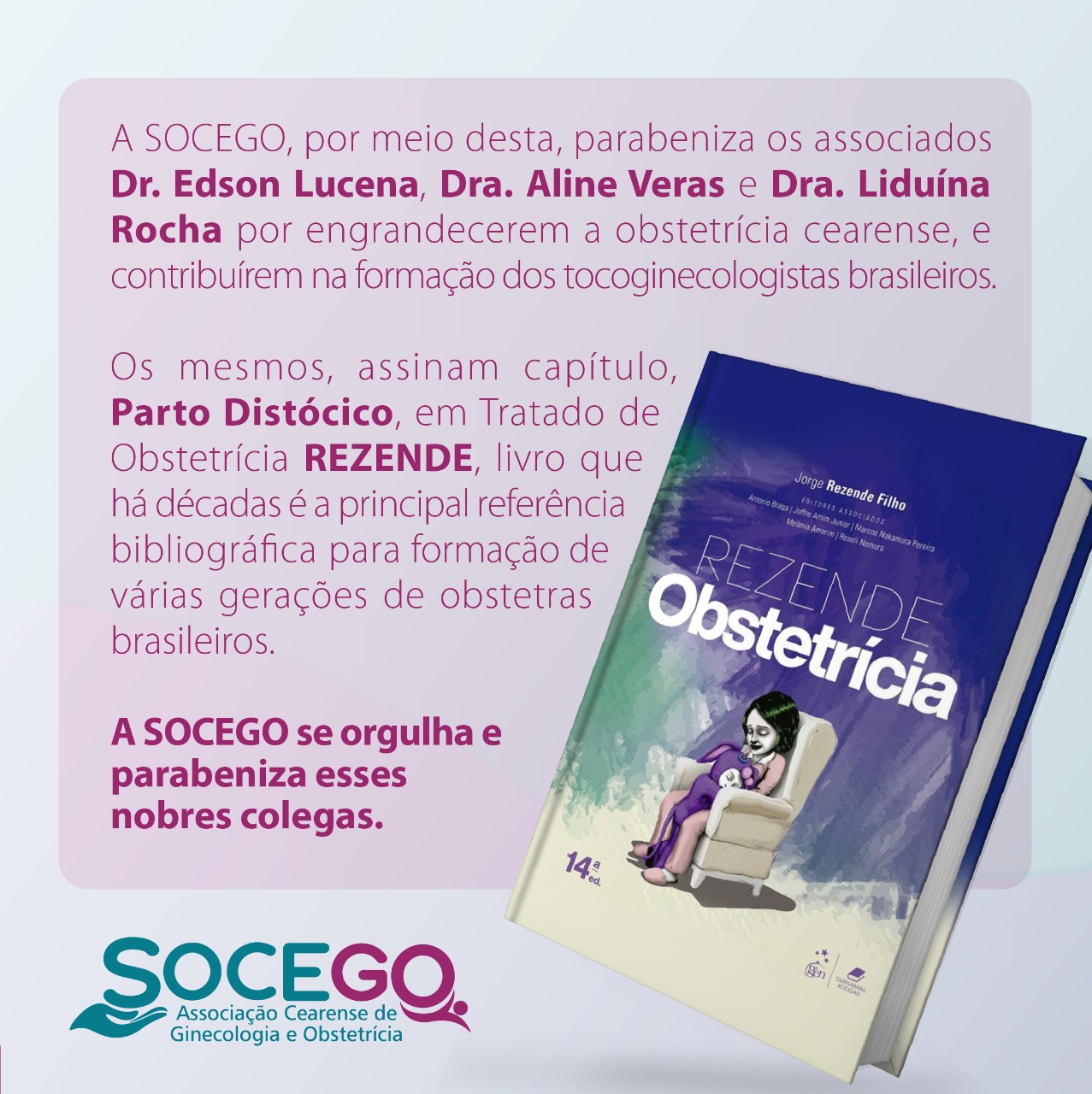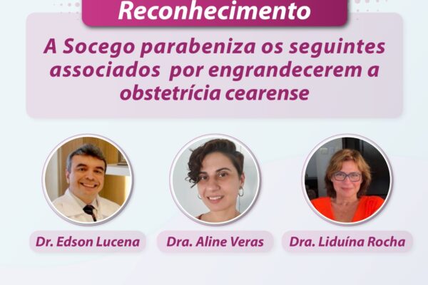 A SOCEGO, por meio desta, parabeniza os associados Dr. Edson Lucena, Dra. Aline Veras e Dra. Liduína Rocha por engrandecerem a obstetrícia cearense, e contribuírem na formação dos tocoginecologistas brasileiros. 🏥